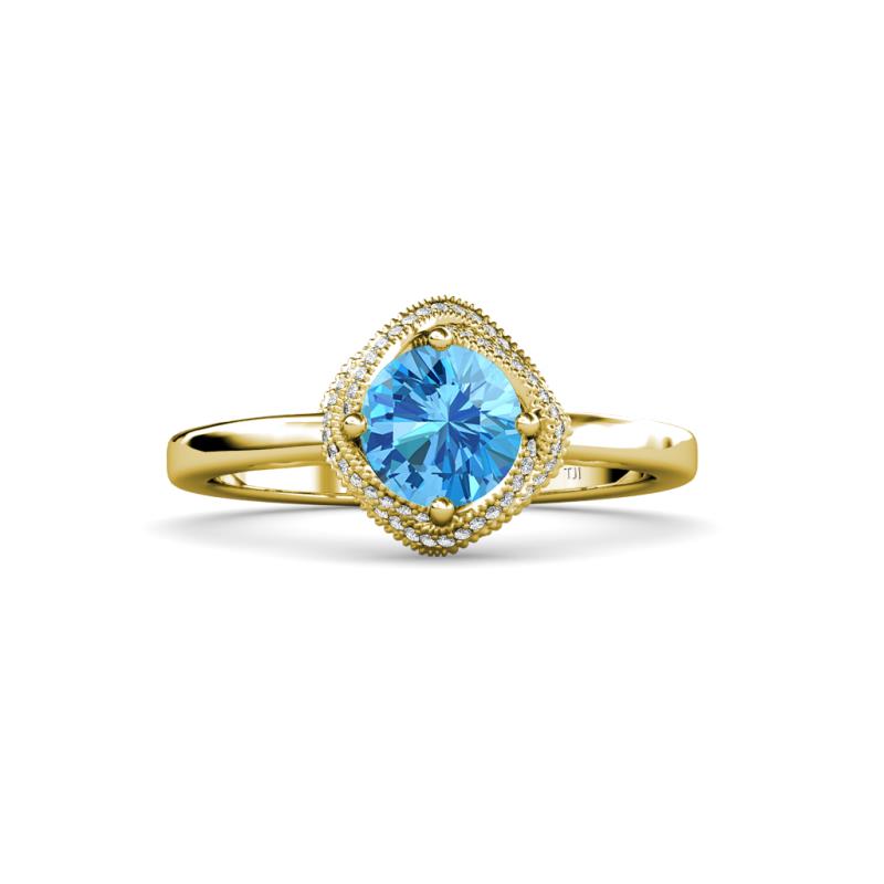 1 1/6 ctw Round Blue Topaz and Diamond Milgrain Womens Halo Engagement Ring 14K Yellow Gold More Details ...