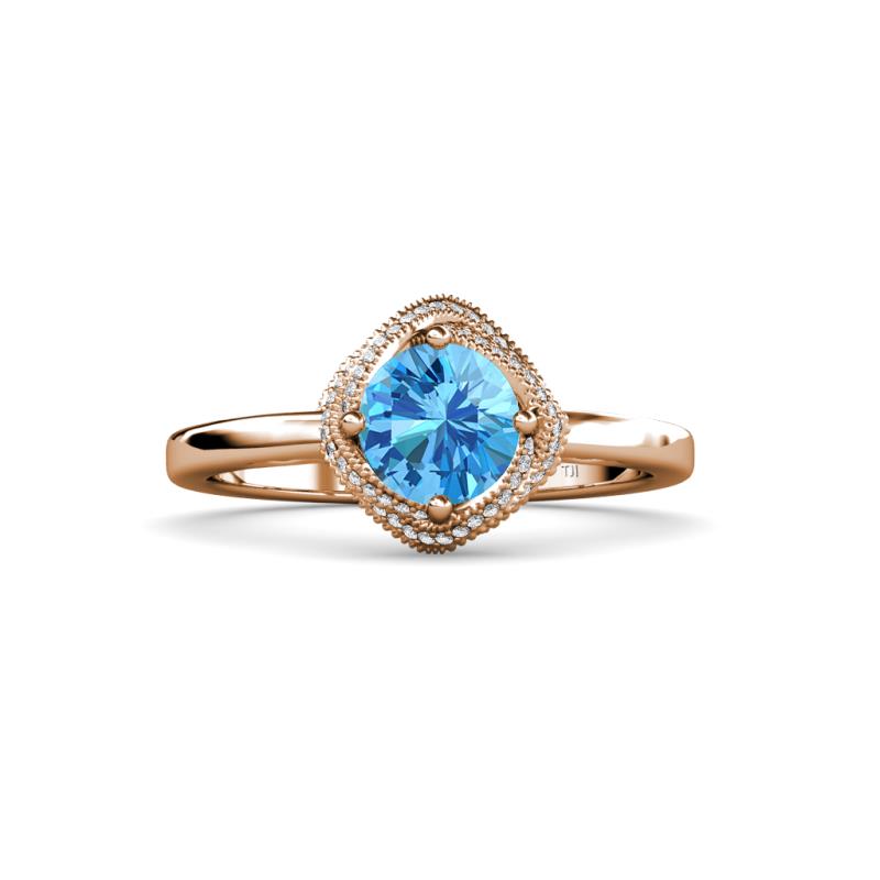 1 1/6 ctw Round Blue Topaz and Diamond Milgrain Womens Halo Engagement Ring 18K Rose Gold More Details ...