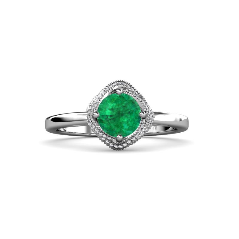 1 ctw Round Emerald and Diamond Milgrain Womens Halo Engagement Ring 18K White Gold More Details ...