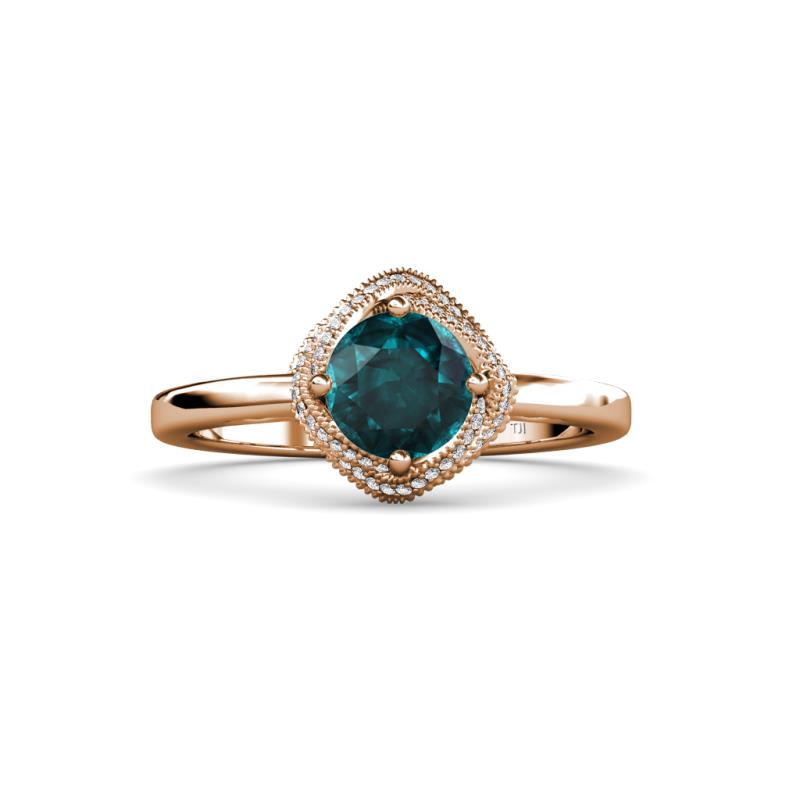 1 1/6 ctw Round London Blue Topaz and Diamond Milgrain Womens Halo Engagement Ring 14K Rose Gold More Details ...