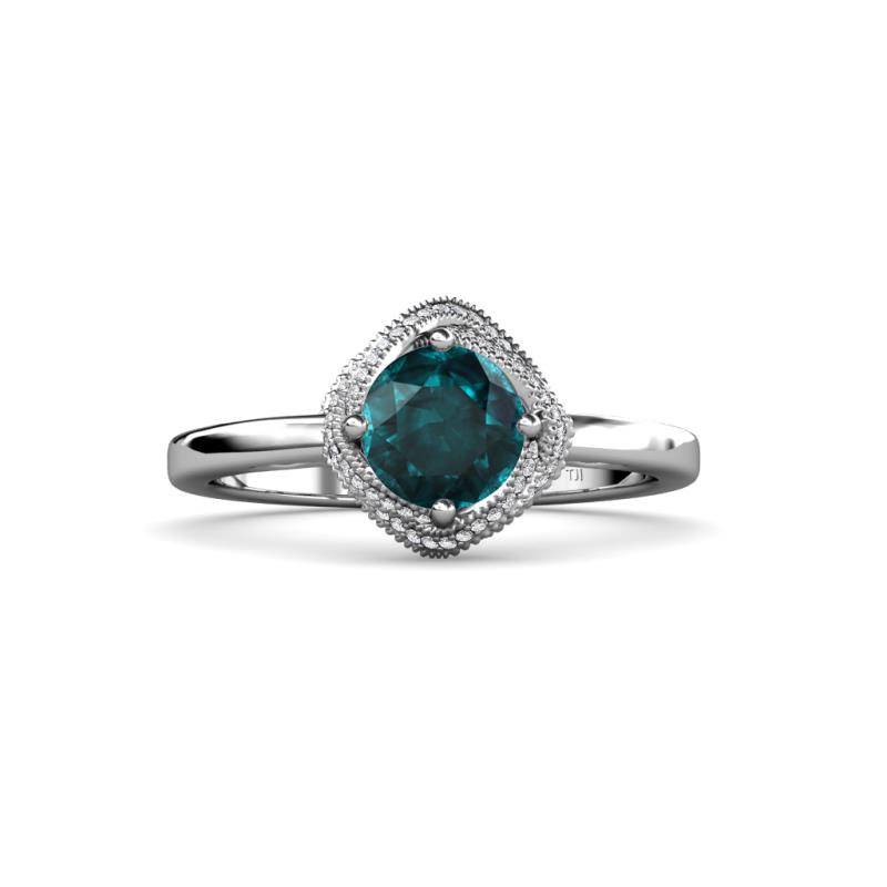1 1/6 ctw Round London Blue Topaz and Diamond Milgrain Womens Halo Engagement Ring Platinum More Details ...