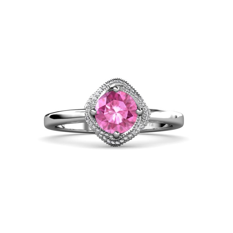 1 1/6 ctw Round Pink Sapphire and Diamond Milgrain Womens Halo Engagement Ring 14K White Gold More Details ...