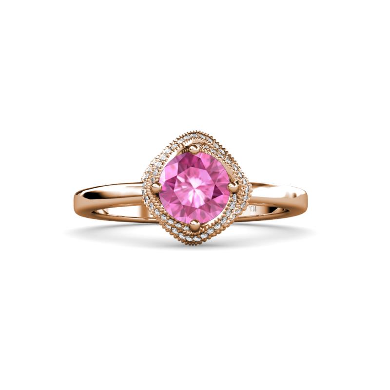 1 1/6 ctw Round Pink Sapphire and Diamond Milgrain Womens Halo Engagement Ring 14K Rose Gold More Details ...