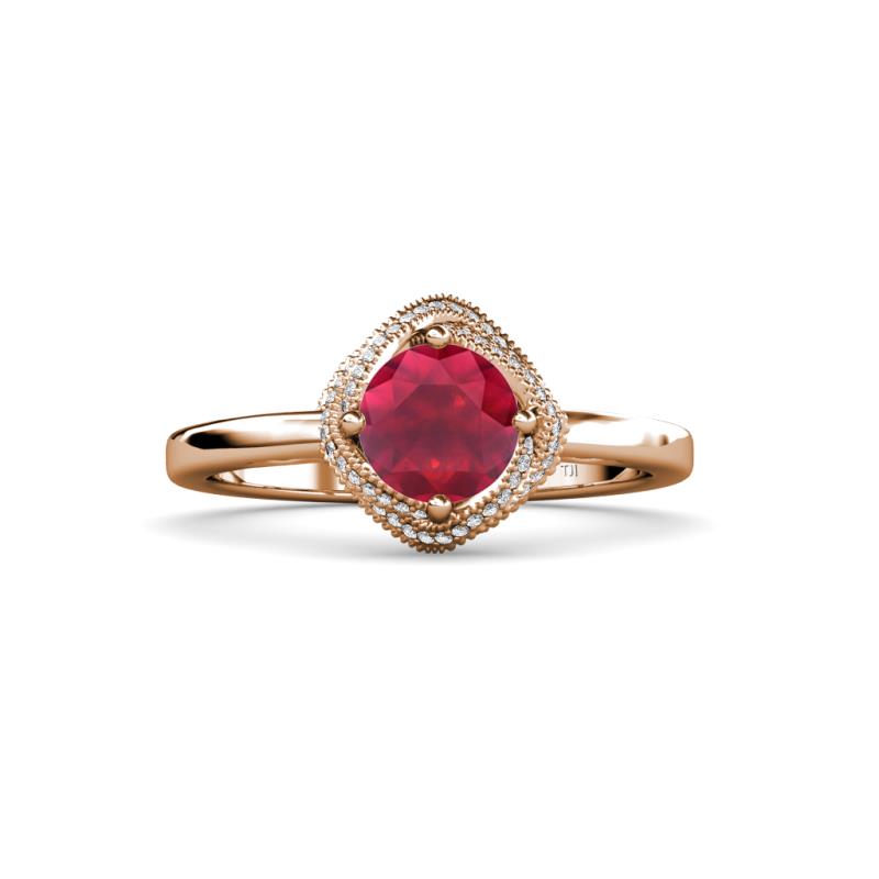 1 1/6 ctw Round Ruby and Diamond Milgrain Womens Halo Engagement Ring 14K Rose Gold More Details ...