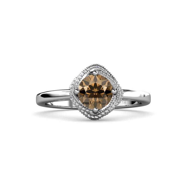 1 1/4 ctw Round Smoky Quartz and Diamond Milgrain Womens Halo Engagement Ring Platinum More Details ...