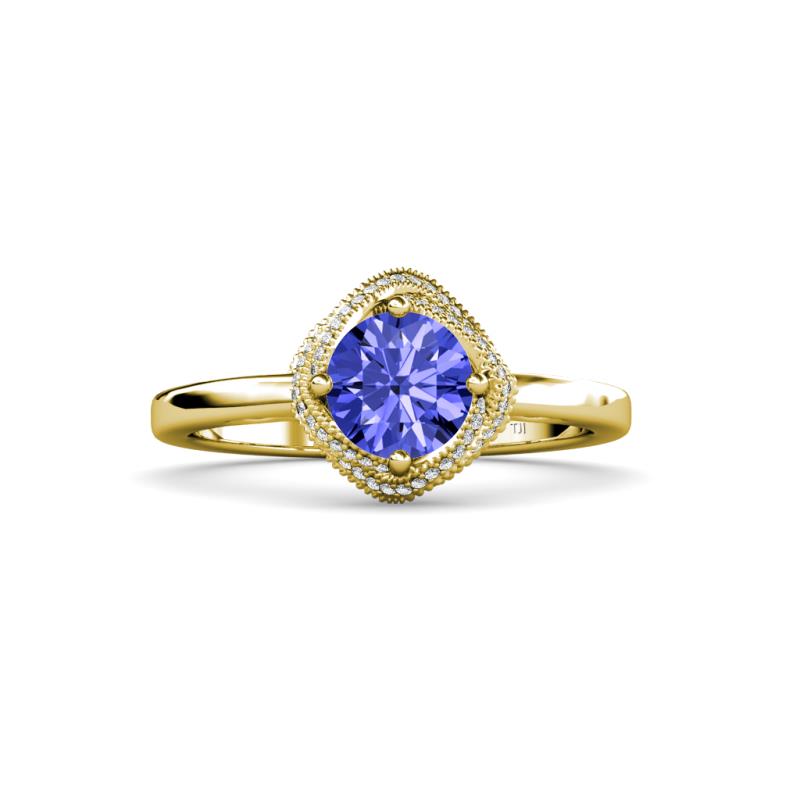 1 1/6 ctw Round Tanzanite and Diamond Milgrain Womens Halo Engagement Ring 14K Yellow Gold More Details ...