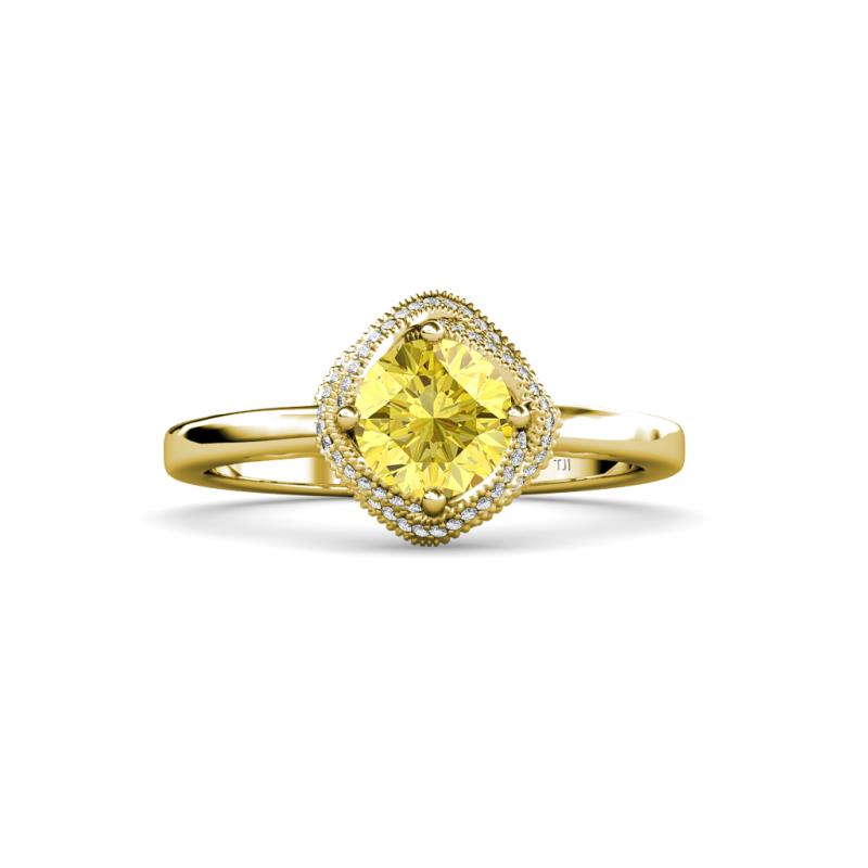 1 1/6 ctw Round Yellow Sapphire and Diamond Milgrain Womens Halo Engagement Ring 14K Yellow Gold More Details ...