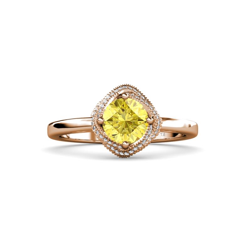 1 1/6 ctw Round Yellow Sapphire and Diamond Milgrain Womens Halo Engagement Ring 14K Rose Gold More Details ...