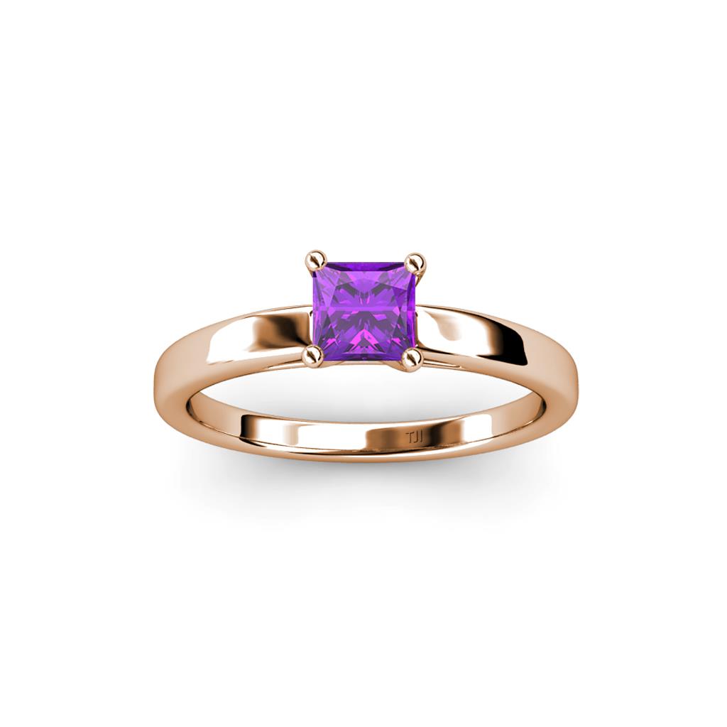 Princess Cut (5.5 mm) Amethyst Womens Solitaire Engagement Ring 7/8 ct 18K Rose Gold More Details ...