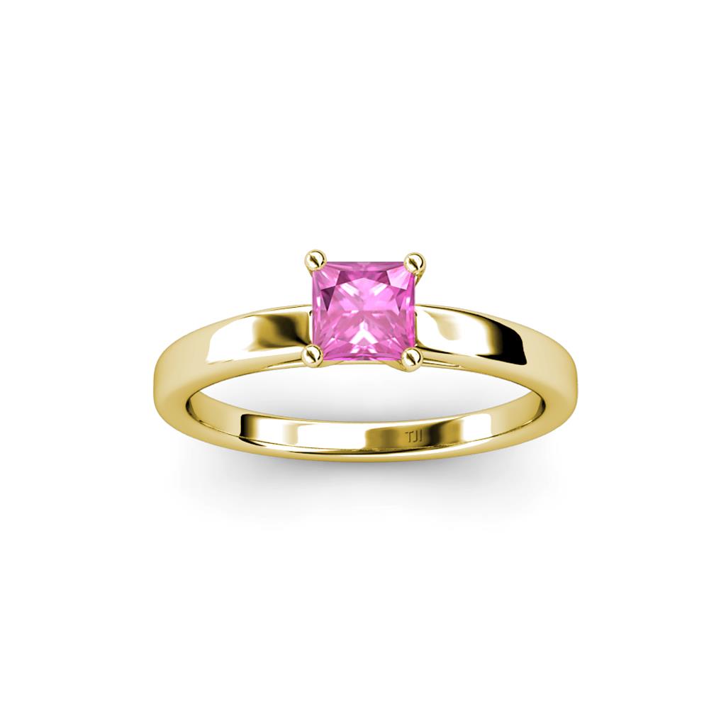 Princess Cut (5.5 mm) Lab Created Pink Sapphire Womens Solitaire Engagement Ring 7/8 ct 14K Yellow Gold More Details ...