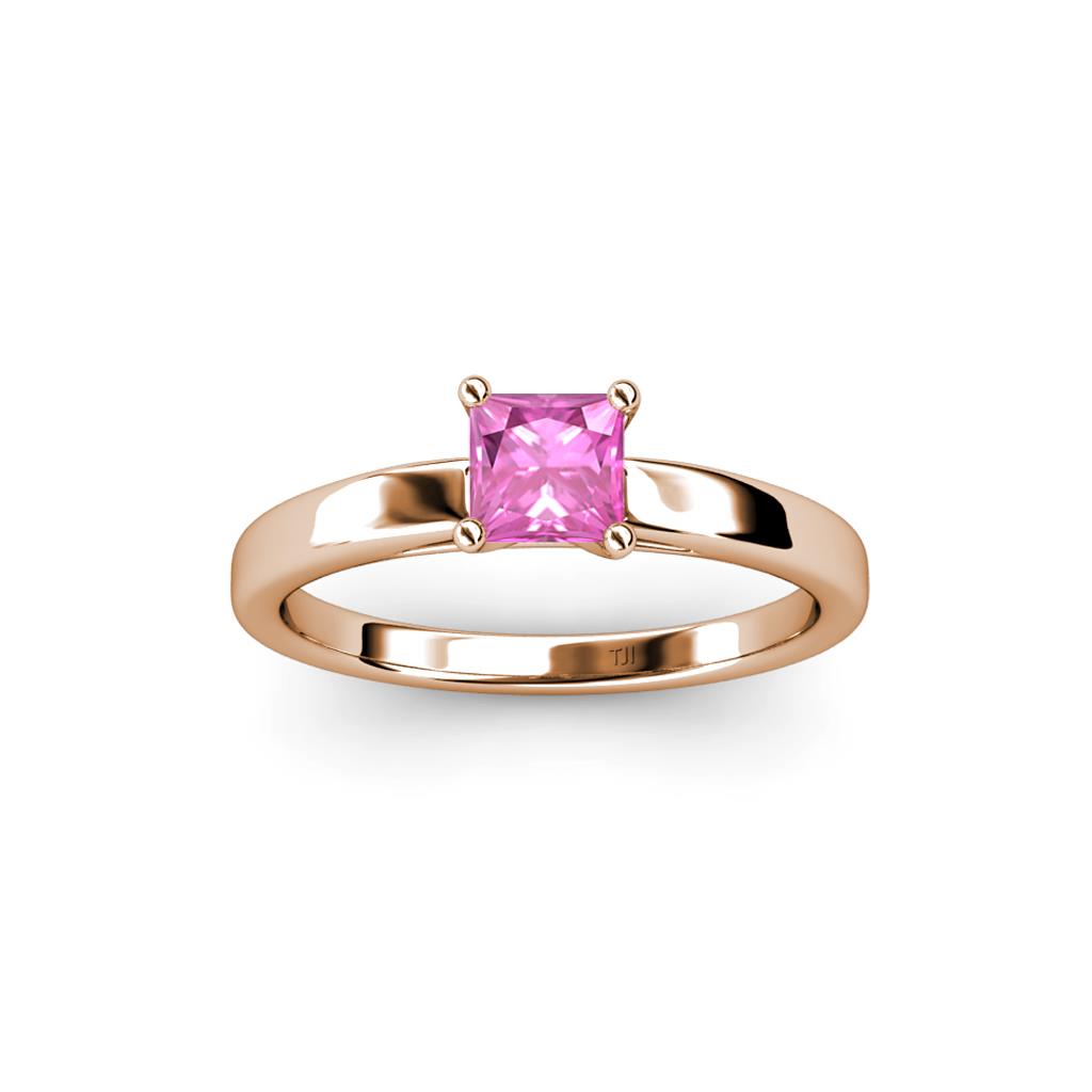 Princess Cut (5.5 mm) Lab Created Pink Sapphire Womens Solitaire Engagement Ring 7/8 ct 18K Rose Gold More Details ...