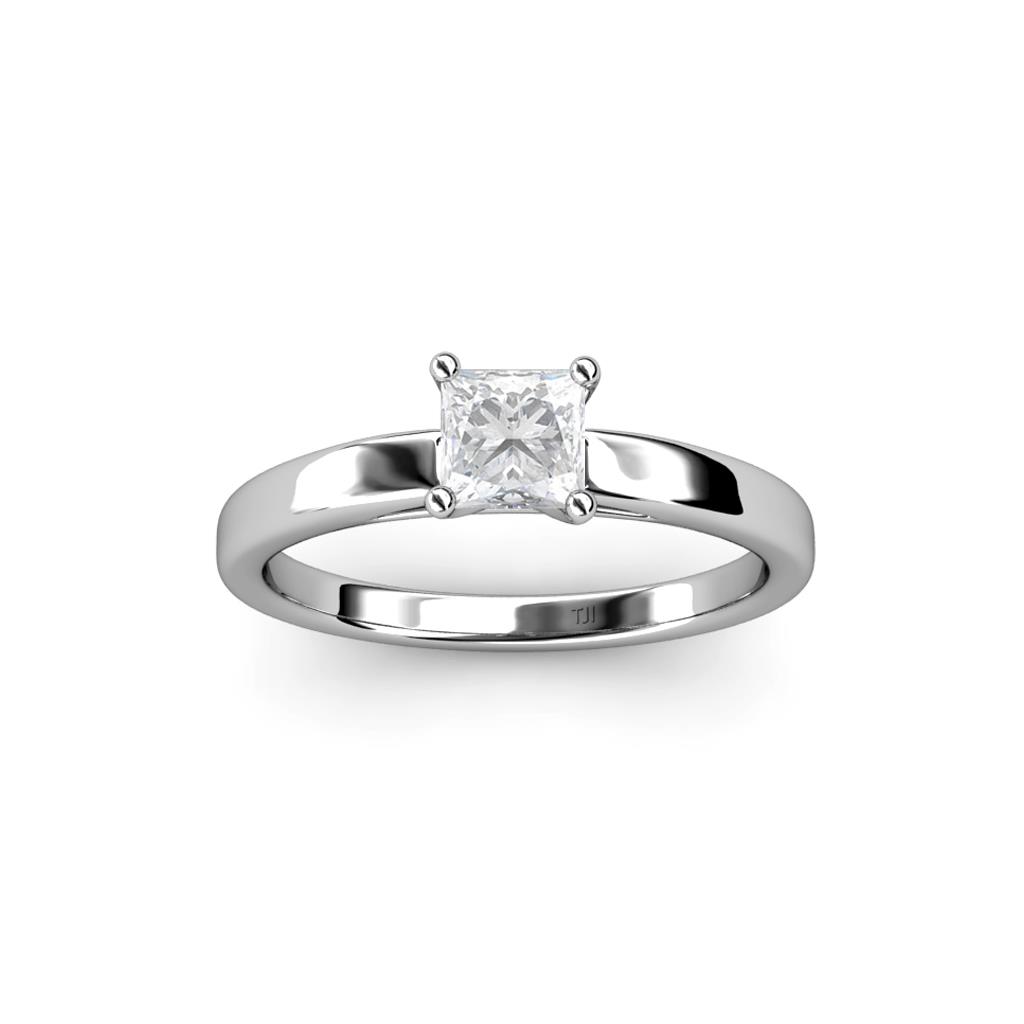 Princess Cut (5.5 mm) Lab Created White Sapphire Womens Solitaire Engagement Ring 7/8 ct 18K White Gold More Details ...