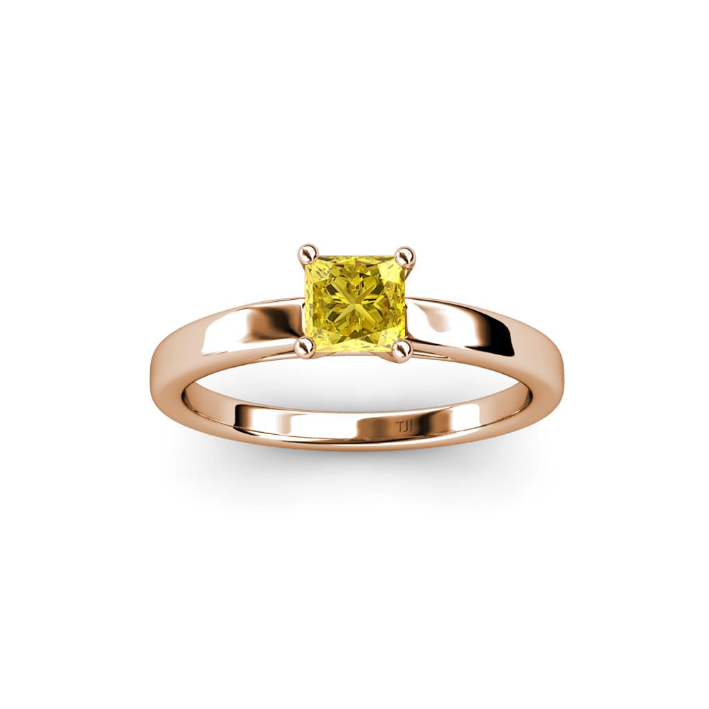 Princess Cut (5.5 mm) Lab Created Yellow Sapphire Womens Solitaire Engagement Ring 7/8 ct 14K Rose Gold More Details ...