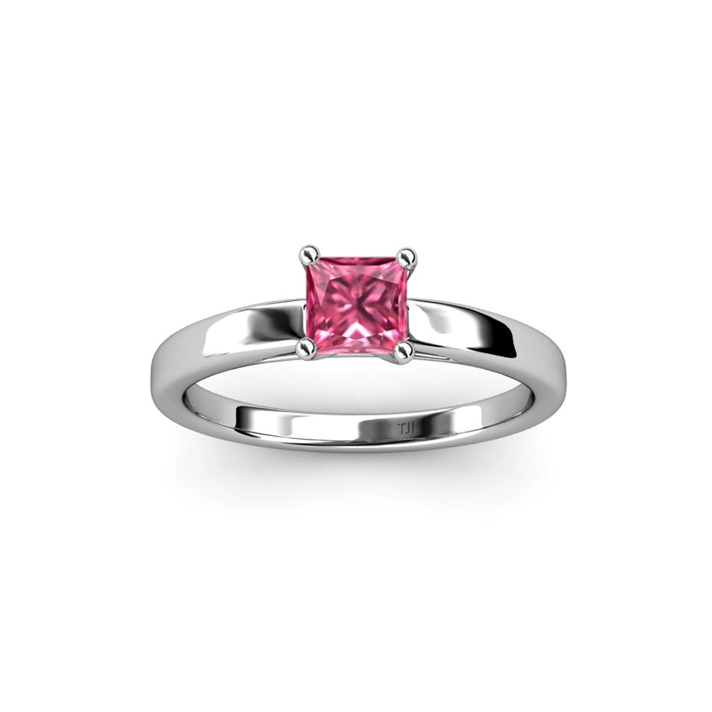 Princess Cut (5.5 mm) Pink Tourmaline Womens Solitaire Engagement Ring 3/4 ct 18K White Gold More Details ...