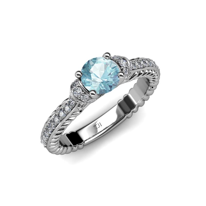 Aquamarine and Diamond Bubble Cable Womens Engagement Ring 1.30 ctw 14K White Gold More Details ...