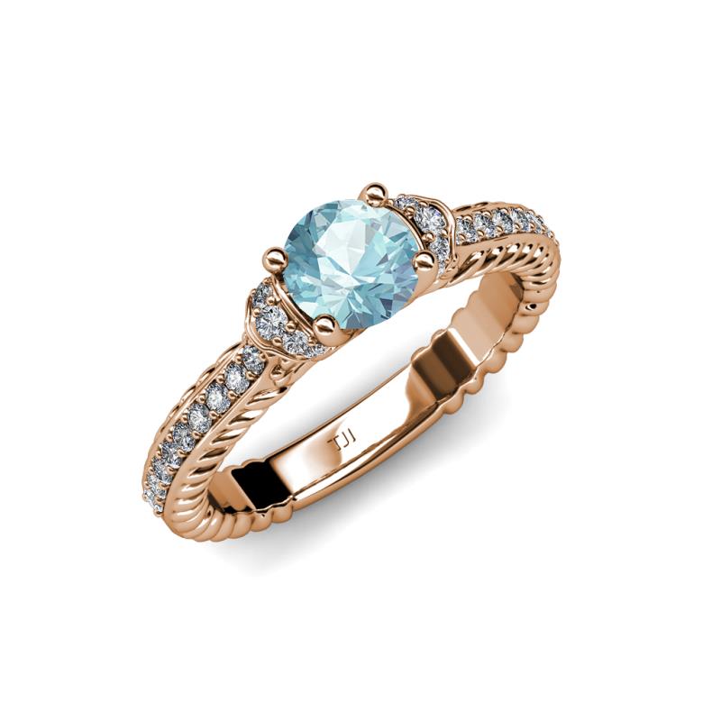 Aquamarine and Diamond Bubble Cable Womens Engagement Ring 1.30 ctw 14K Rose Gold More Details ...