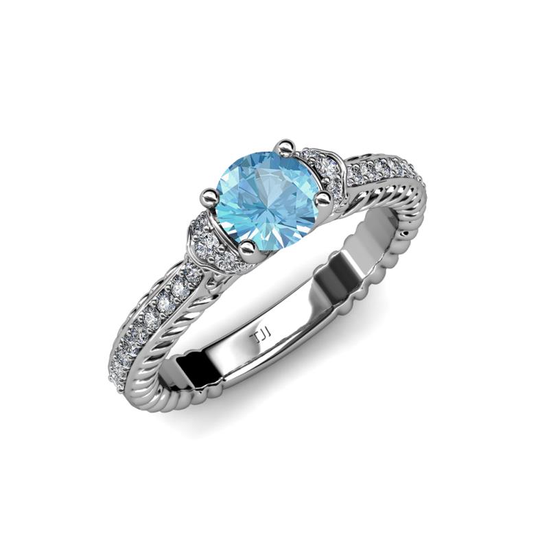 Blue Topaz and Diamond Bubble Cable Womens Engagement Ring 1.40 ctw 14K White Gold More Details ...