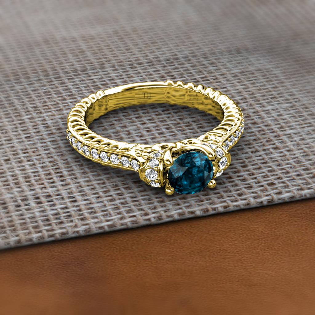 Blue and White Diamond Bubble Cable Womens Engagement Ring 1.33 ctw 18K Yellow Gold More Details ...