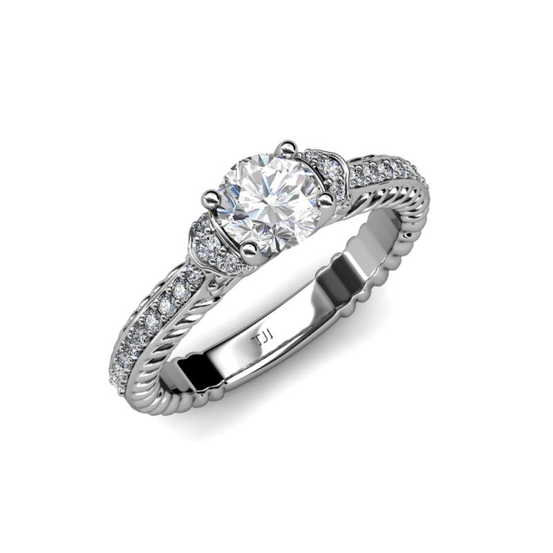 This Glamorous Engagement Ring of 1.32 ctw features Center IGI Certified Round Lab Grown Diamond flanked by series of Round Natural Diamonds further forming remarkable combination with bubble cable design making it extraordinary and vintage.