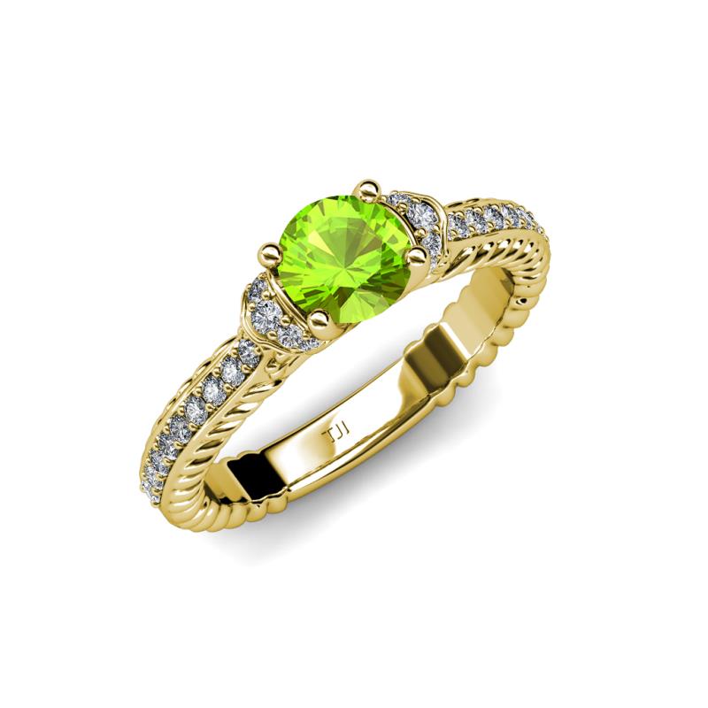 Peridot and Diamond Bubble Cable Womens Engagement Ring 1.45 ctw 18K Yellow Gold More Details ...