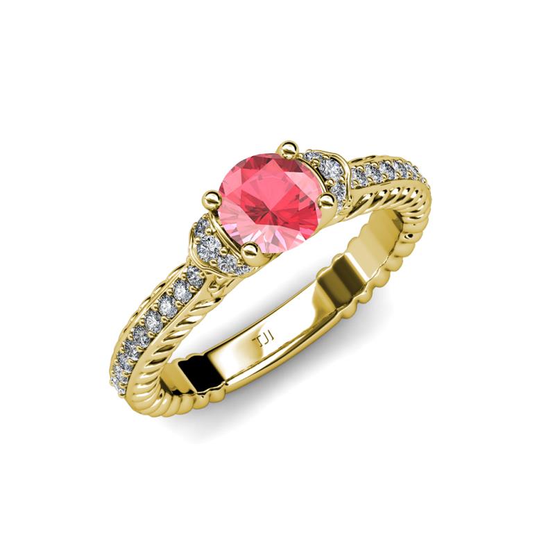 Pink Tourmaline and Diamond Bubble Cable Womens Engagement Ring 1.30 ctw 14K Yellow Gold More Details ...