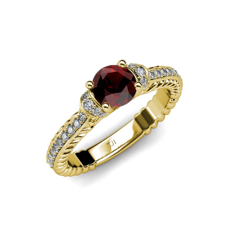 Red Garnet and Diamond Bubble Cable Womens Engagement Ring 1.40 ctw 14K Yellow Gold More Details ...
