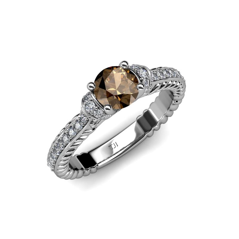 Smoky Quartz and Diamond Bubble Cable Womens Engagement Ring 1.30 ctw 18K White Gold More Details ...