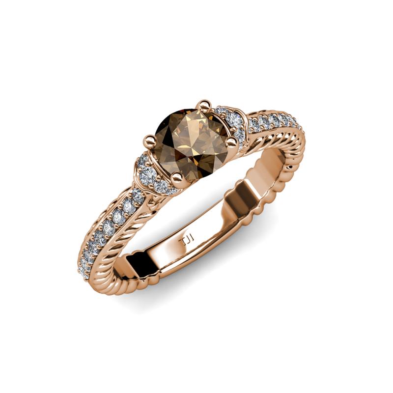 Smoky Quartz and Diamond Bubble Cable Womens Engagement Ring 1.30 ctw 18K Rose Gold More Details ...