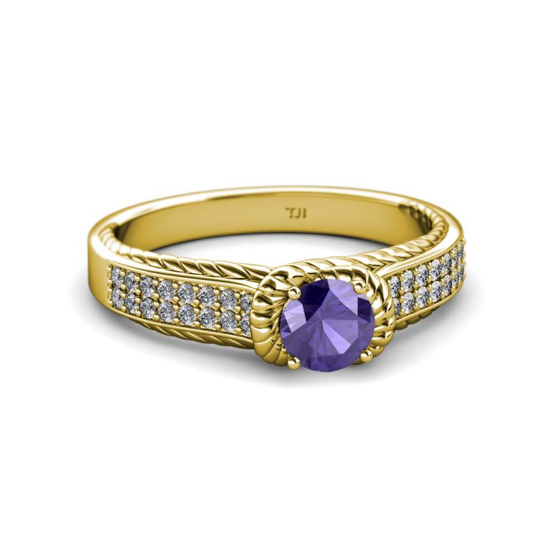 Iolite and Diamond Womens Solitaire Plus Engagement Ring 1.22 ctw 18K Yellow Gold More Details ...