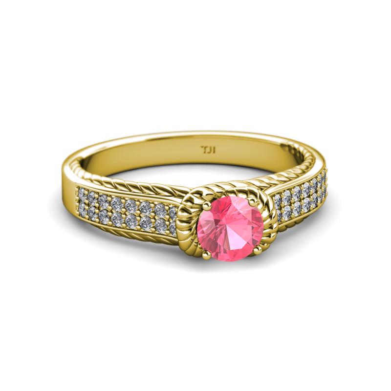 Pink Tourmaline and Diamond Womens Solitaire Plus Engagement Ring 1.22 ctw 18K Yellow Gold More Details ...