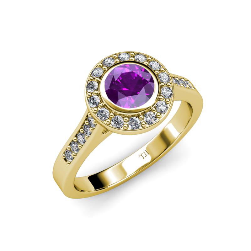 Amethyst and Diamond Womens Halo Engagement Ring 1.23 ctw 18K Yellow Gold More Details ...