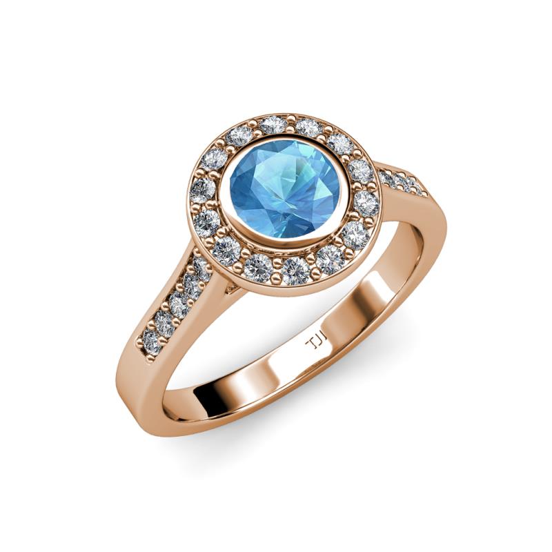 Blue Topaz and Diamond Womens Halo Engagement Ring 1.41 ctw 14K Rose Gold More Details ...