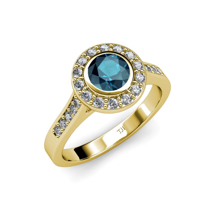 Blue and White Diamond Womens Halo Engagement Ring 1.36 ctw 18K Yellow Gold More Details ...