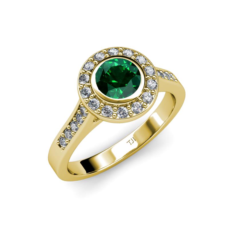 Emerald and Diamond Womens Halo Engagement Ring 1.08 ctw 14K Yellow Gold More Details ...