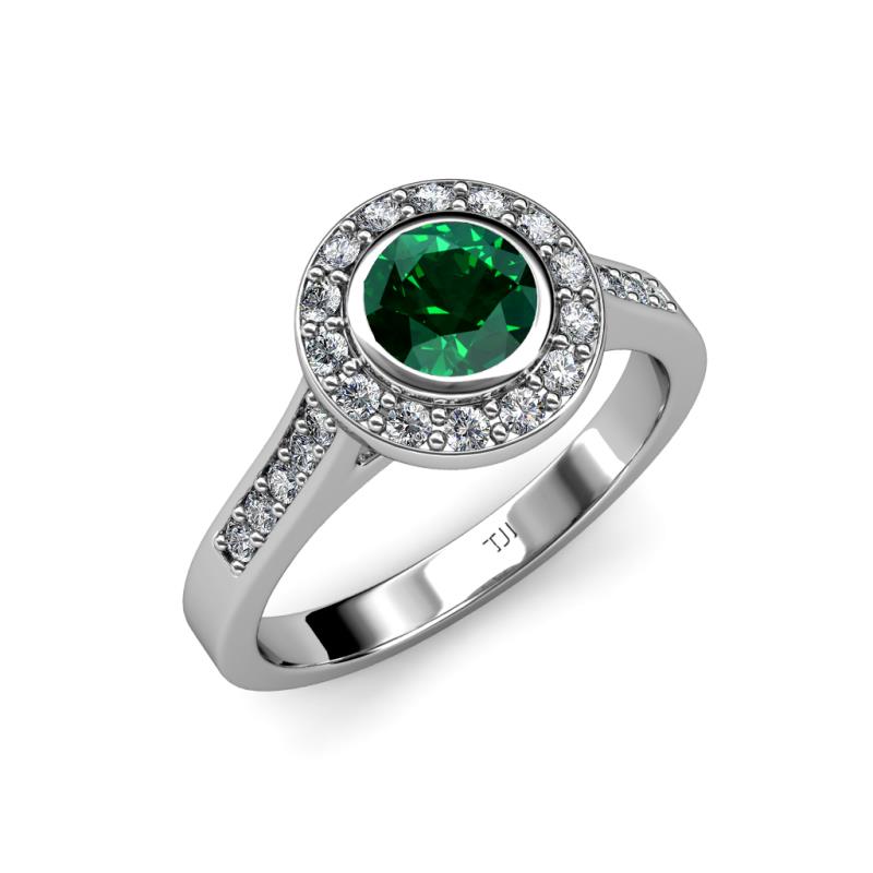 Emerald and Diamond Womens Halo Engagement Ring 1.08 ctw Platinum More Details ...
