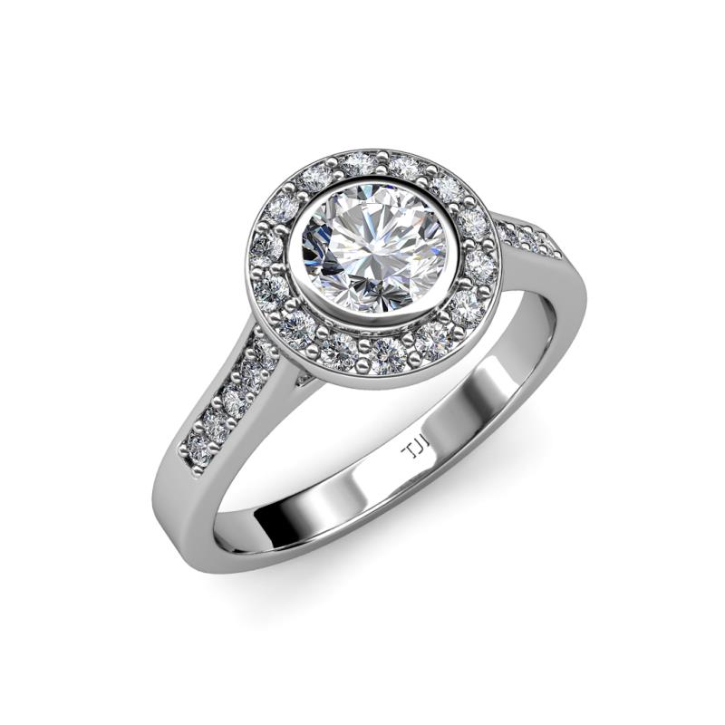 1.36 ctw IGI Certified Lab Grown Diamond Round (6.50 mm) & Natural Diamond Round (1.50 mm) Prong set Halo Engagement Ring in 14K White Gold. More Details ...