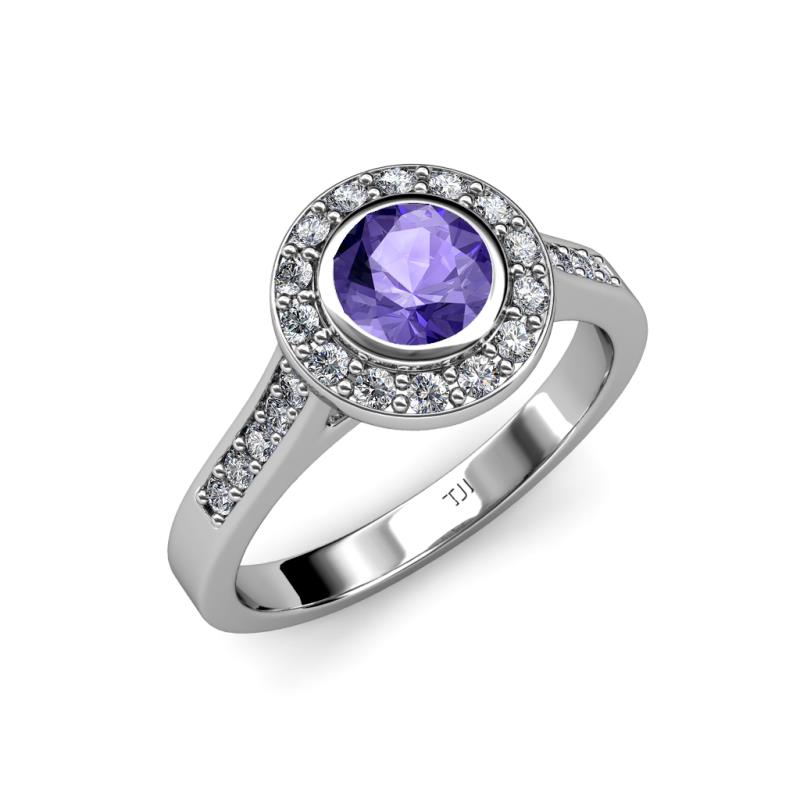 Iolite and Diamond Womens Halo Engagement Ring 1.23 ctw 18K White Gold More Details ...