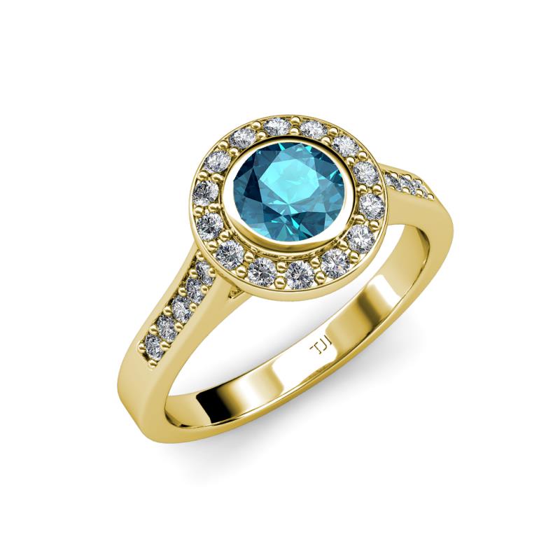 London Blue Topaz and Diamond Womens Halo Engagement Ring 1.41 ctw 18K Yellow Gold More Details ...