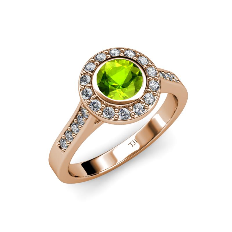 Peridot and Diamond Womens Halo Engagement Ring 1.46 ctw 18K Rose Gold More Details ...