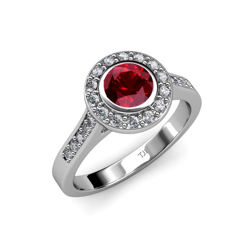 Ruby and Diamond Womens Halo Engagement Ring 1.31 ctw 18K White Gold More Details ...