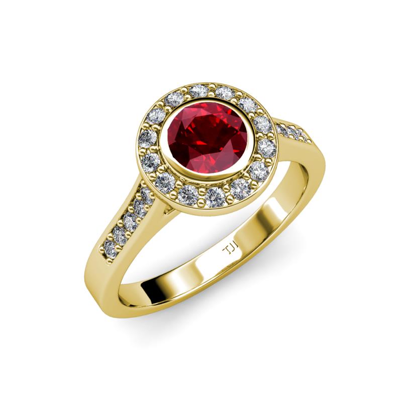 Ruby and Diamond Womens Halo Engagement Ring 1.31 ctw 18K Yellow Gold More Details ...