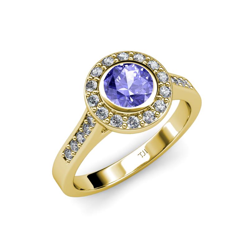 Tanzanite and Diamond Womens Halo Engagement Ring 1.28 ctw 18K Yellow Gold More Details ...