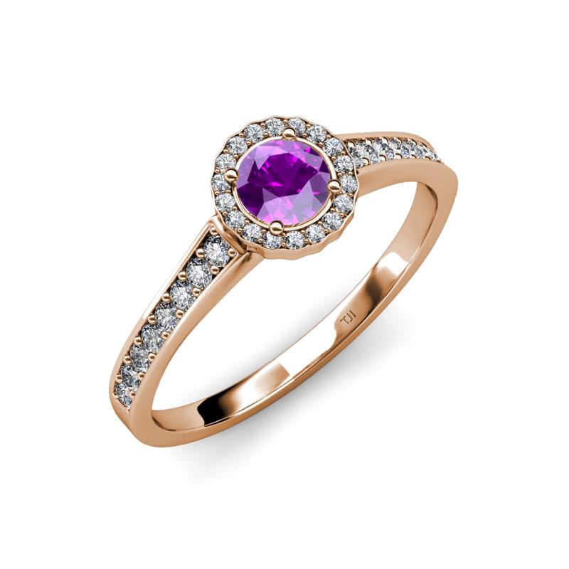 Amethyst and Diamond Womens Halo Engagement Ring 0.91 ctw 14K Rose Gold More Details ...