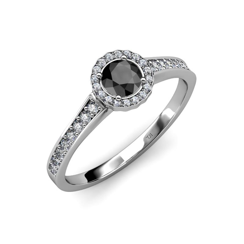 Celebrate the priceless moment of your life with 1.17 ct tw Halo Engagement Ring with Center Black Diamond flared by halo of White Diamonds which continue to illuminate the shank making it a symbol of your unending love.