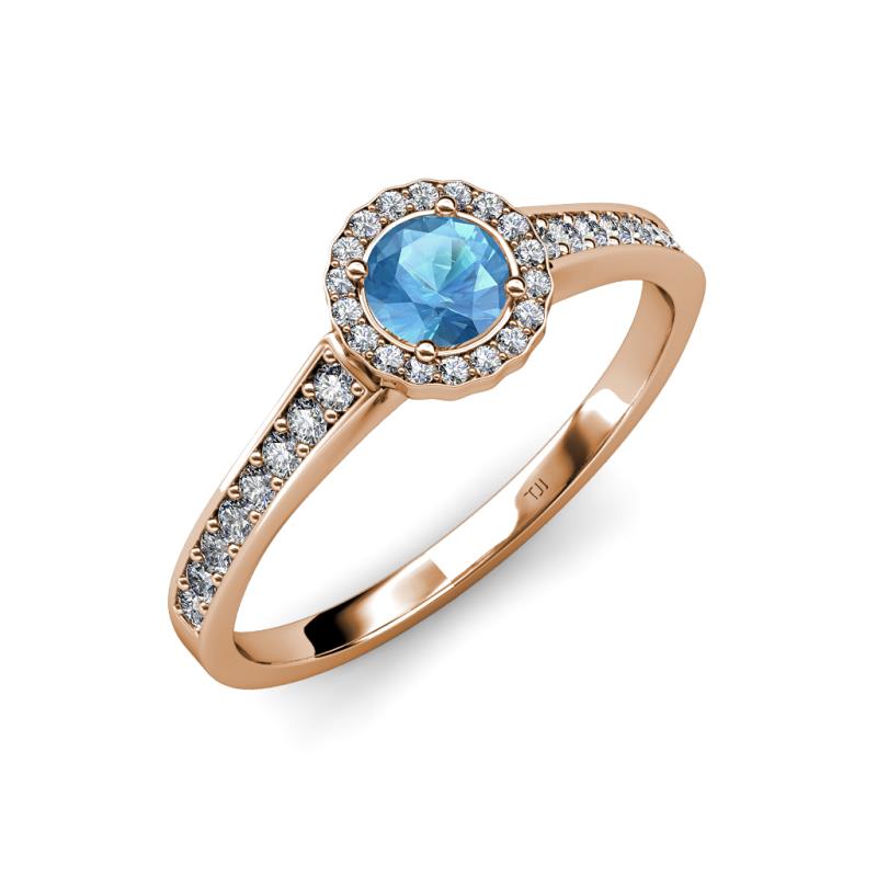 Blue Topaz and Diamond Womens Halo Engagement Ring 1.04 ctw 14K Rose Gold More Details ...