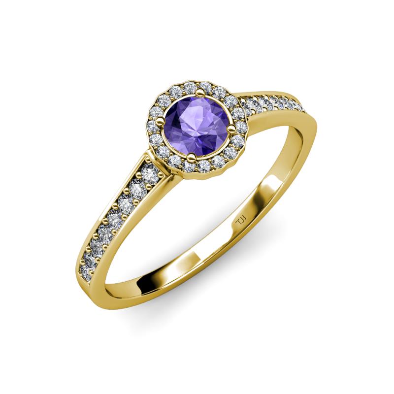 Iolite and Diamond Womens Halo Engagement Ring 0.92 ctw 14K Yellow Gold More Details ...