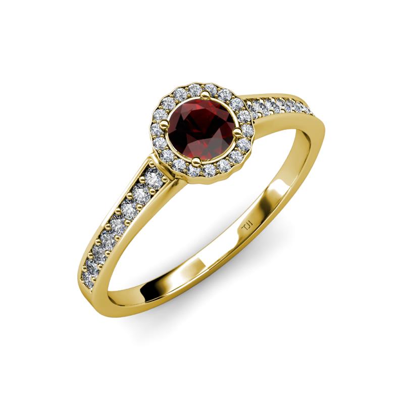 Red Garnet and Diamond Womens Halo Engagement Ring 1.01 ctw 18K Yellow Gold More Details ...