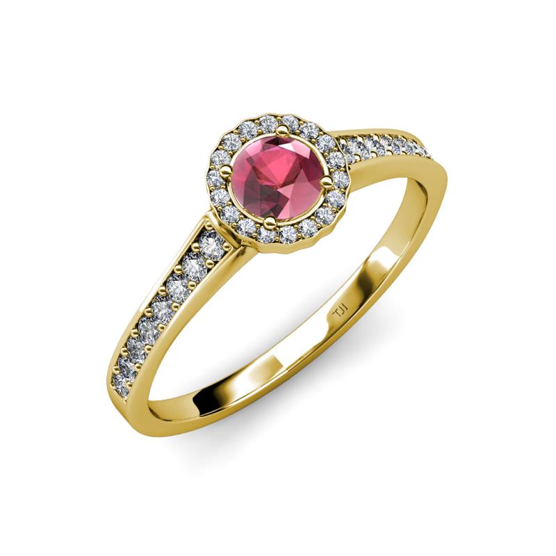 Rhodolite Garnet and Diamond Womens Halo Engagement Ring 0.99 ctw 18K Yellow Gold More Details ...