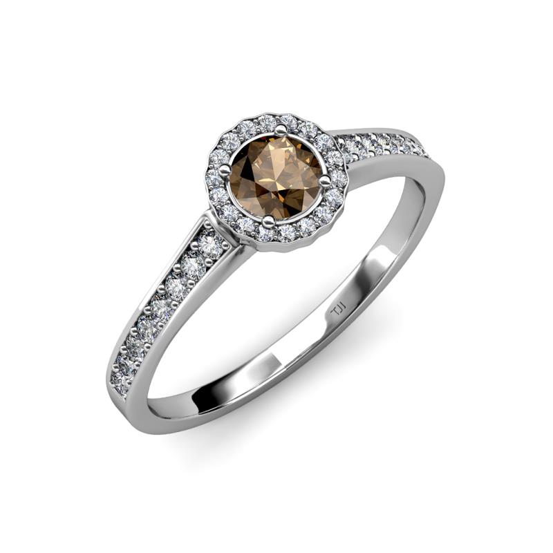 Smoky Quartz and Diamond Womens Halo Engagement Ring 0.94 ctw 18K White Gold More Details ...
