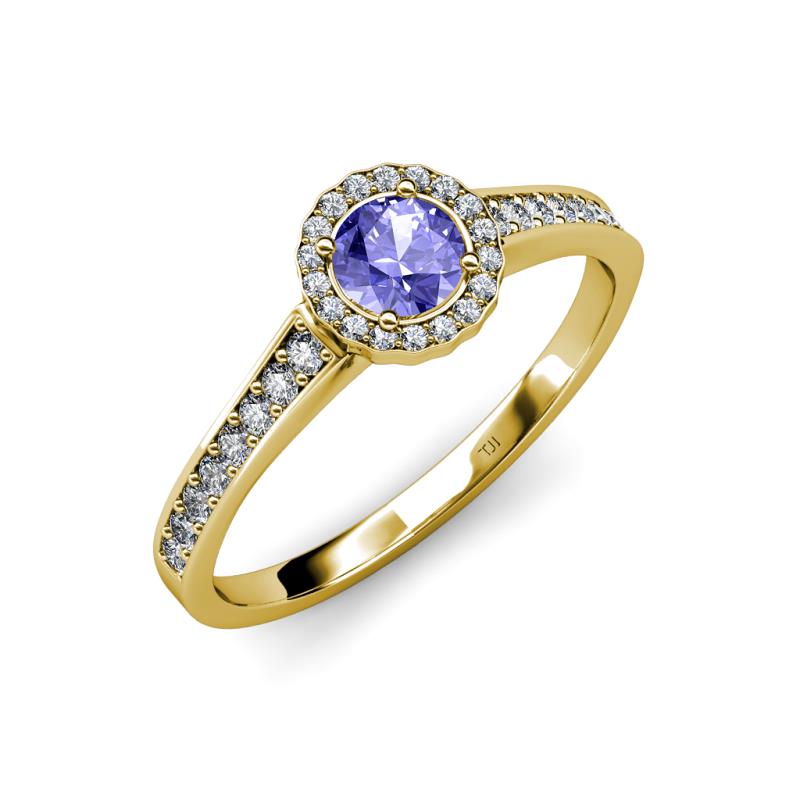 Tanzanite and Diamond Womens Halo Engagement Ring 0.94 ctw 18K Yellow Gold More Details ...